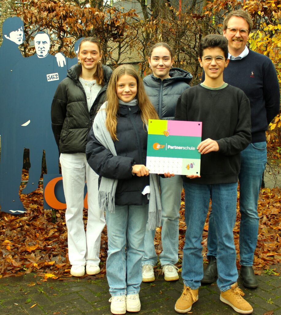 Mit ihrem überzeugenden Auftritt im Bewerbungsvideo haben Enna, Hannah, Leni und Carlos (v.l.) die ZDFgoesSchule-Jury überzeugt, das CvO ins Kooperationsnetzwerk zu holen. Schulleiter Frank Pauleit freut sich über die Kooperation und ist gespannt.