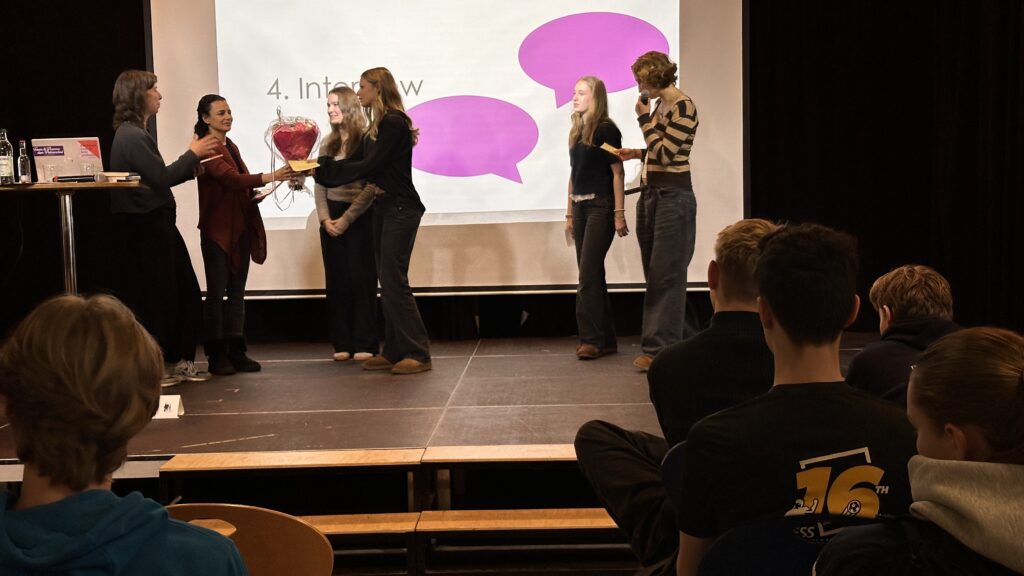 Um dieses Thema mehr ins Bewusstsein zu rücken, haben die Oberstufenschülerinnen Amelie, Mia, Maya und Alma für ihre MitschülerInnen einen Vortrag organisiert und zwei Vertreterinnen der autonomen Frauenhäuser Hamburg zu einem Vortrag ans Carl-von-Ossietzky-Gymnasium eingeladen. Milli und Mariam informierten die Schülerinnen und Schüler über die Organisation der Frauenhäuser in Hamburg und gaben Tipps und Hinweise, wie mögliche Warnsignale zu erkennen sind und wie man Betroffene unterstützen und sich respektvoll verhalten kann. Auch erzählten die Expertinnen, vor welchen Hindernissen die Betroffenen nach wie vor stünden und dass es auch in Hamburg noch zu wenige Plätze für Frauen und Kinder gäbe. „Wir erhoffen uns dadurch ein verändertes Bewusstsein im Umgang miteinander und einen Beitrag zur Gewaltprävention“, so die vier Organisatorinnen.
